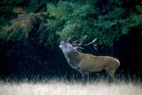 Met het indringende burlen worden de vrouwtjes geïmponeerd, de bronstkreet galmt dan over de toppen van het lover in het Veluwse bos.